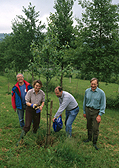 Walbottle Community Orchard is on Tyneside. Encouraged by several successful Apple Day celebrations, the Countryside Ranger Service of Newcastle City Council led a public consultation of plans for a Community Orchard on the edge of Curtens’ Quarry in Walbottle, west of the city in October 1997. Four months later local people planted more than 50 apple, pear and cherry trees on a third of a hectare of former grazing land. The orchard has already been included in play schemes and educational visits by local primary schools, and has hosted launch celebrations of the adjacent Walbottle Brickworks Local Nature Reserve. In autumn 1998, thousands of snowdrop and bluebell bulbs were planted between the fruit trees, and these spring flowers will continue to attract people into the orchard while the young fruit trees develop.