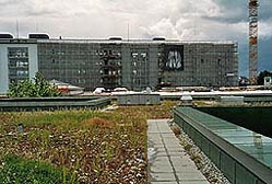 Both roofs have used local materials crushed brick and concrete from the original site in the case of the Laban Dance Centre. Piling to the edge of the building site as the building took form, the local plants and insects were able to stay with it and transfer to the roof the new building.