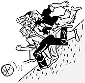 Cooper's Hill Cheese Rolling, Cooper's Hill, Brockworth, Gloucestershire - young people assemble at the top of the hill and chase the cheese down the hill. Whoever reaches the bottom first claims it. The custom originally ensured the villagers rights to graze sheep on the hill. The event has become so popular that Cooper's Hill can become quite overwhelmed.