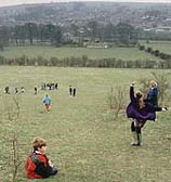 "A field called Paste Egg ... obviously this sloping valley side was a venue for egg rolling ... this Easter we decided to revive the custom. The owner was enthusiastic and mowed a special "bouling sward" as he thought the vegetation too long to achieve a good run.