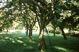 But that is by no means all. What he has achieved is a demonstration of the maintenance of rich habitats for all kinds of creatures and plants as well as producing fine products. He recalls one day in September 1999 seeing seven butterfly species enjoying his plums: comma, large white, painted lady, red admiral, small copper, small tortoiseshell and speckled wood; at other times meadow brown, gatekeeper, purple hairstreak, brimstone, holly blue, orange tip, peacock and ringlet have been recorded. Long lists of birds, bees, bats and beetles beyond counting as well as butterflies are welcomed into the traditional orchard together with fungi, wild flowers and browsing creatures.