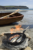 Left - Line-caught mackerel with bacon and milk sauce, prepared for a beach barbeque, to his grandmother’s recipe, by Toby Ashworth, managing director of the Nare Hotel, situated on Cornwall’s Roseland peninsula.