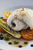 Centre - Rolled wing of ray with braised celery prepared at Stephen and Yvonne Hill’s The Bay Restaurant and Gallery, Penzance, by chef Ben Reeve.